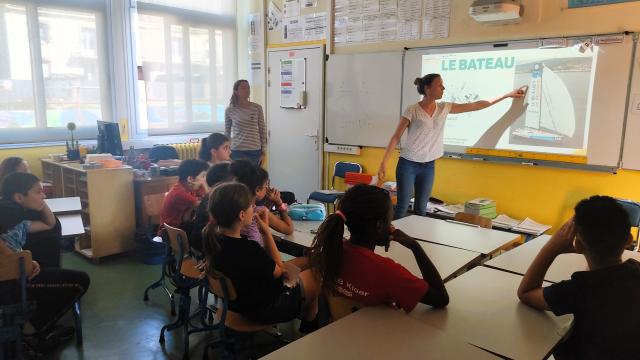 Ensuite, le duo de skippeuses a présenté son projet de courir la Transat Jacques Vabre 2023 : itinéraire de la Transat et présentation de leur voilier Class40. Puis les navigatrices ont répondu aux questions des élèves.