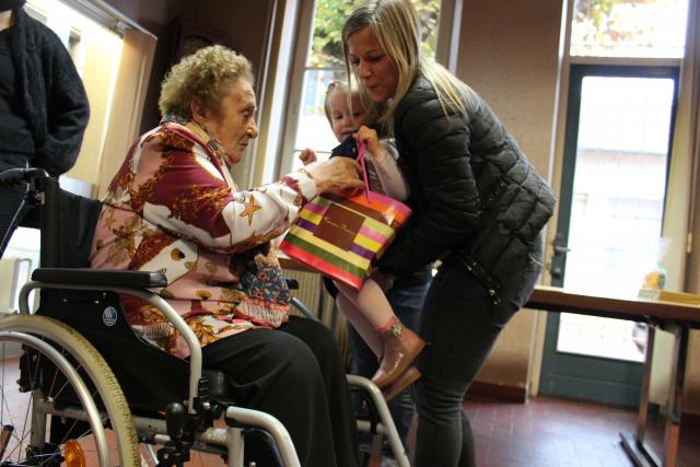 La rencontre s'est déroulée à l'EHPAD La Providence, au Coteau. Andrée, 108 ans, doyenne des pupilles de 14-18, a été présentée à Hugo et Mélina, 10 et 3 ans, plus jeunes pupilles de la Nation de la Loire.