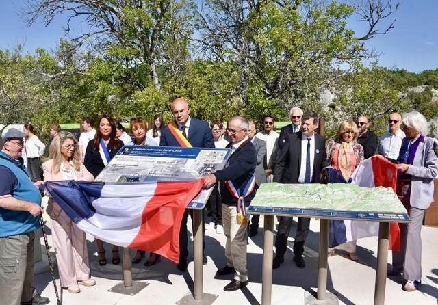 Puis, direction Céreste en Luberon, où accueilli par le maire Gerard Baumel, trois autres panneaux ont été inaugurés, reprenant le parcours de René Char dans cette commune, point de contrôle de la Section Atterrissage Parachutage.