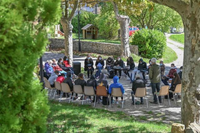 En cette période de crise sanitaire, des mesures ont été mises en place afin de respecter au mieux les distanciations physiques. Après une introduction historique de Laetitia Vion, référente mémoire PACA, les élèves, répartis en deux groupes, ont ensuite pu entendre les témoignages captivants de trois pieds-noirs, un appelé, un fils d’un ancien moghazni et trois Ongloises qui ont vécu l’arrivée des harkis au hameau de forestage d’Ongles. Cette visite s’inscrit dans le cadre de l’appel à projets « Témoins de la guerre d’Algérie » porté par l’ONACVG et l’académie d'Aix-Marseille.