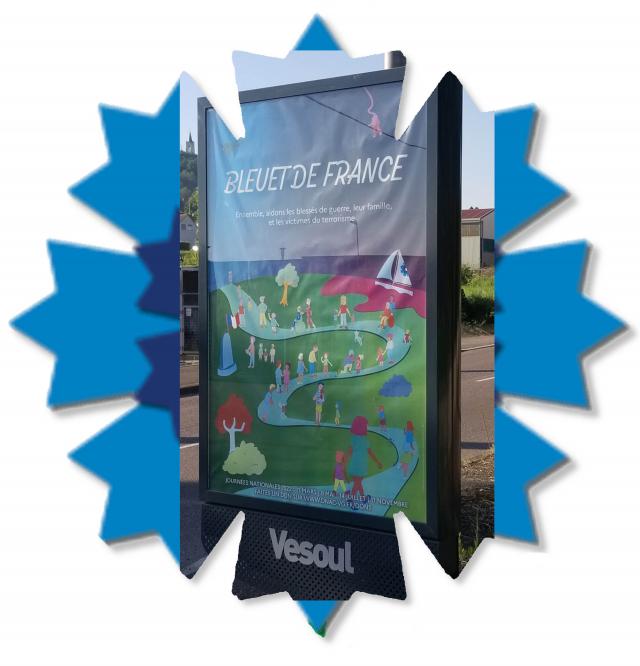 Comme le clamait Jacques Brel dans sa célèbre chanson de 1968, « T'as voulu voir Vesoul, et on a vu Vesoul ! » Eh bien c’est chose faite pour le Bleuet de France. Pas moins de trois colonnes Morris et sept panneaux publicitaires de la capitale saônoise arborent fièrement l’affiche de Bleuet de France 2022.
