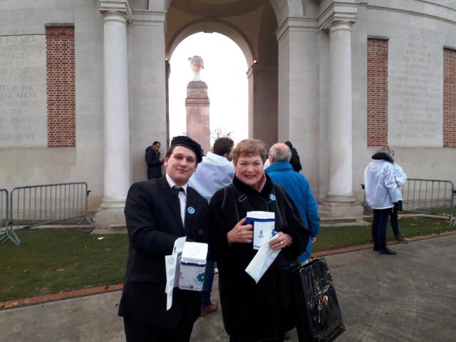 Mme Ducatel et M. Regnier collectent devant le mémorial britannique à Arras le 10 novembre