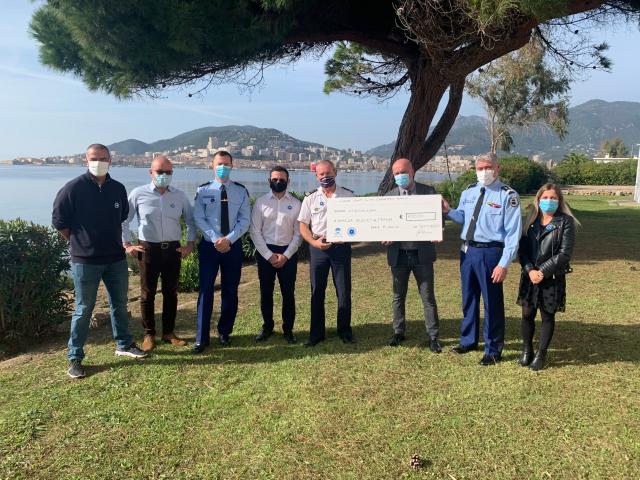 L'intégralité des frais d'inscription a été reversée au Bleuet le mardi 10 novembre et a donné lieu à la remise d'un chèque de 600 €. Ce moment convivial s'est déroulé en comité restreint, pour cause de contraintes sanitaires, dans le cadre idyllique de la base navale. Étaient néanmoins présents, Jean-Jacques Ferrara, député de la 1re circonscription de la Corse-du-Sud, le général Tony Mouchet, commandant la région de gendarmerie de la Corse, le capitaine de vaisseau Bertrand de Gaullier des Bordes, COMAR et délégué militaire départemental de Corse-du-Sud qui nous accueillait, le major de police Sauveur Nicolas, président du Corsica triathlon club ajaccien, le maréchal des logis-chef Stéphane Rodriguez, président du club sportif de la gendarmerie, Sébastien Deliperi, conseiller en charge du conseil municipal des jeunes de la ville d'Ajaccio et Jacques Vergellati, directeur départemental accompagné d'Angélica Catellaggi, référente mémoire pour la Corse.