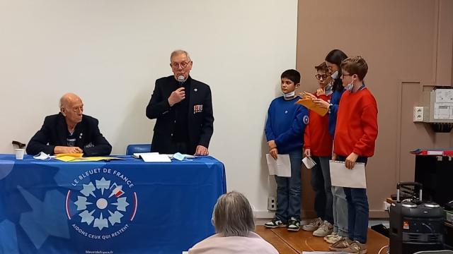 Cette journée s'est achevée avec une remise de chèque par le directeur de cabinet de la préfecture au directeur adjoint du Bleuet de France en présence des représentants des grands collecteurs mobilisés dans le cadre de l'opération « du Bleu de Chartres au Bleuet de France » menée en novembre dernier. Jeunes du SNU, JSP, cadets de la gendarmerie et élèves d'une classe défense ont formé une grande chaîne de solidarité, devenant les bâtisseurs de la cathédrale du souvenir dans cette belle ville de Chartres. Cette action symbolique rappelant qu « On sera là » aussi en 2026, une chanson interprétée avec passion par les collégiens en clôture de cette journée.