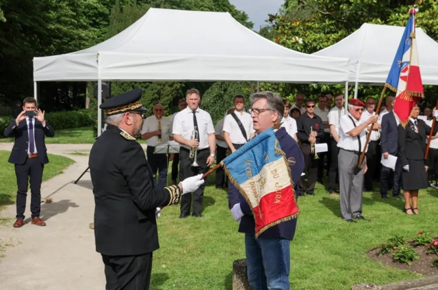 Un drapeau des FFI a été confié au service départemental du Jura par l'AMRJ lors de la cérémonie concernant la journée nationale commémorative de l'appel du général de Gaulle à refuser la défaite et à poursuivre le combat contre l'ennemi.